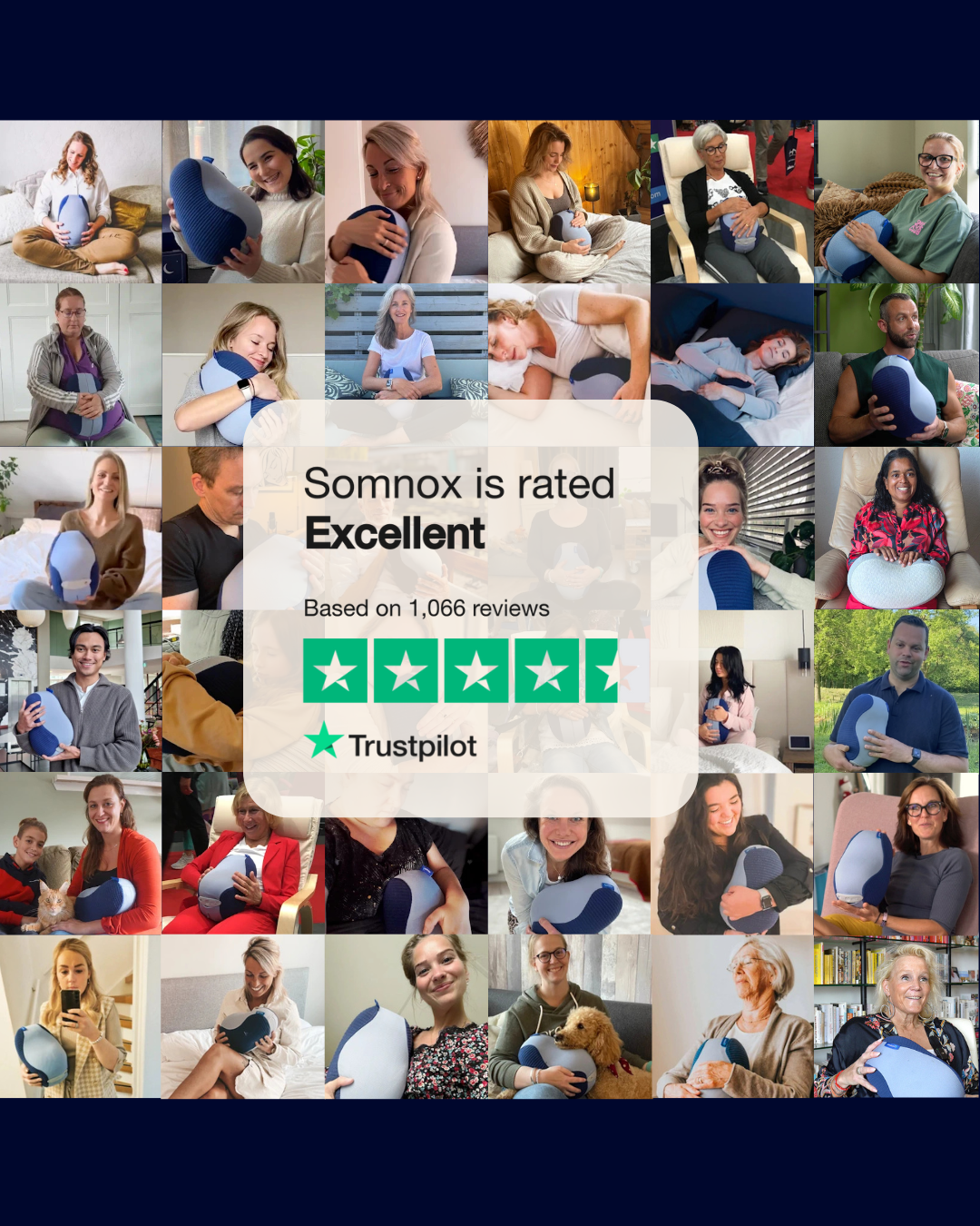 Ik word met Somnox meer uitgerust wakker, val makkelijker in slaap en hij geeft me een warm en veilig/geborgen gevoel van rust."
